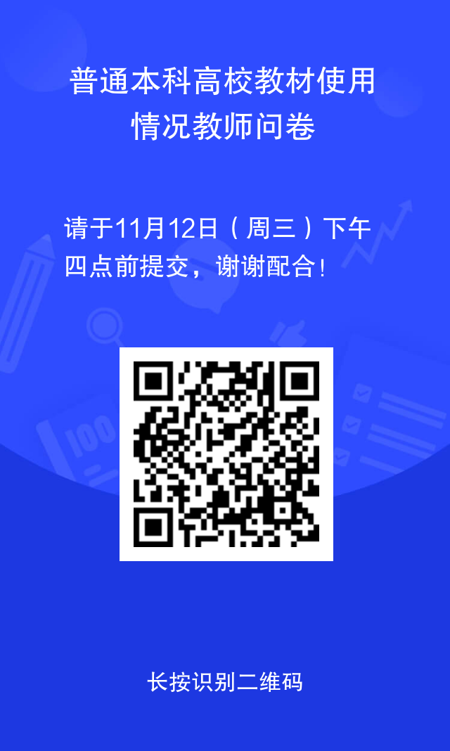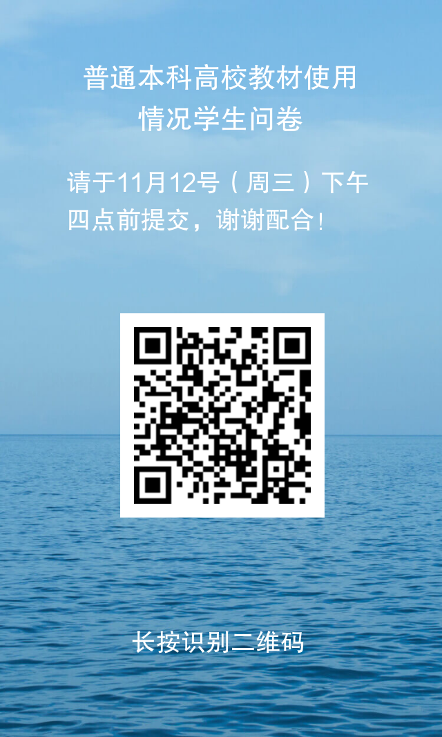 学校设置了如下的教师和学生线上调查问卷,请各学院(部)于11月12日之前完成问卷,并于11月20日前上交24-25学年教材监测工作年报。