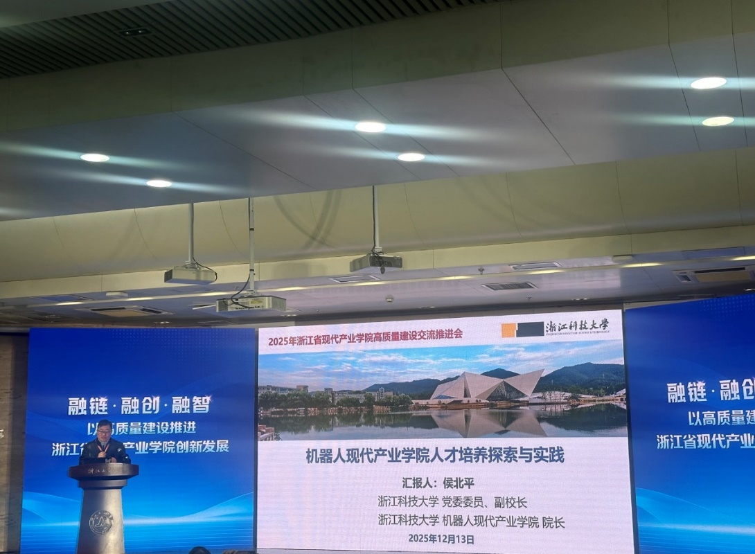 12月12日至13日,2025年度浙江省现代产业学院高质量建设交流推进会在浙江工业大学屏峰校区召开。副校长侯北平应邀出席会议,并在会上作主旨报告。我校教务处和三个省级现代产业学院负责人参加了会议。
